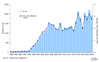 Le nombre de cas notifiés reste élevé depuis 2018, hors 2020.